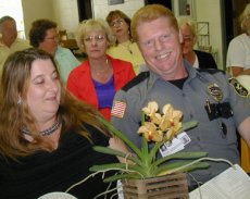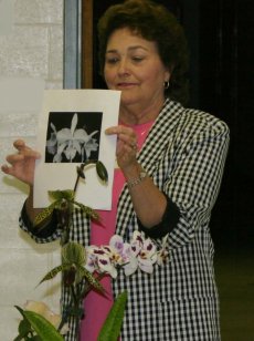 "Growing Forward," a round-table discussion of orchid culture issues and aptly named to theme the Society's basic function, kicks off the afternoon's activities: members can bring orchid plants in for inspection and advice, the more experienced growers providing feedback, encouragement, and support. The sales tables also open early, providing members and guests a readily available source for plants, information, and supplies.