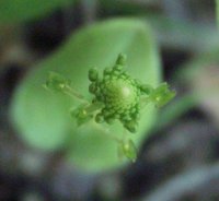 Lovell Hollow, Olin's gorgeous, 25 acre piece of woodland in northwest Arkansas where he makes his home, boasts native species ranging from the diminutive Green Adder's Mouth Orchid, Malaxis unifolia, shown at left, to the Large Yellow Lady's Slipper, Cypripedium parviflorum var. pubescens, shown below.